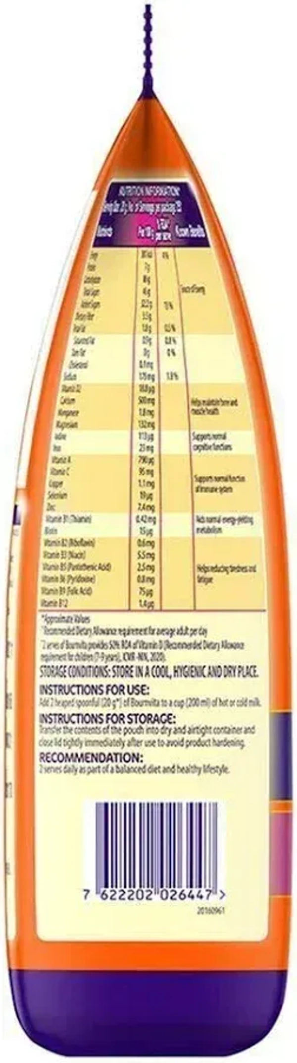 Preparation: Add 2 heaped teaspoons (approx. 20g) of Bournvita to a cup of hot or cold milk.