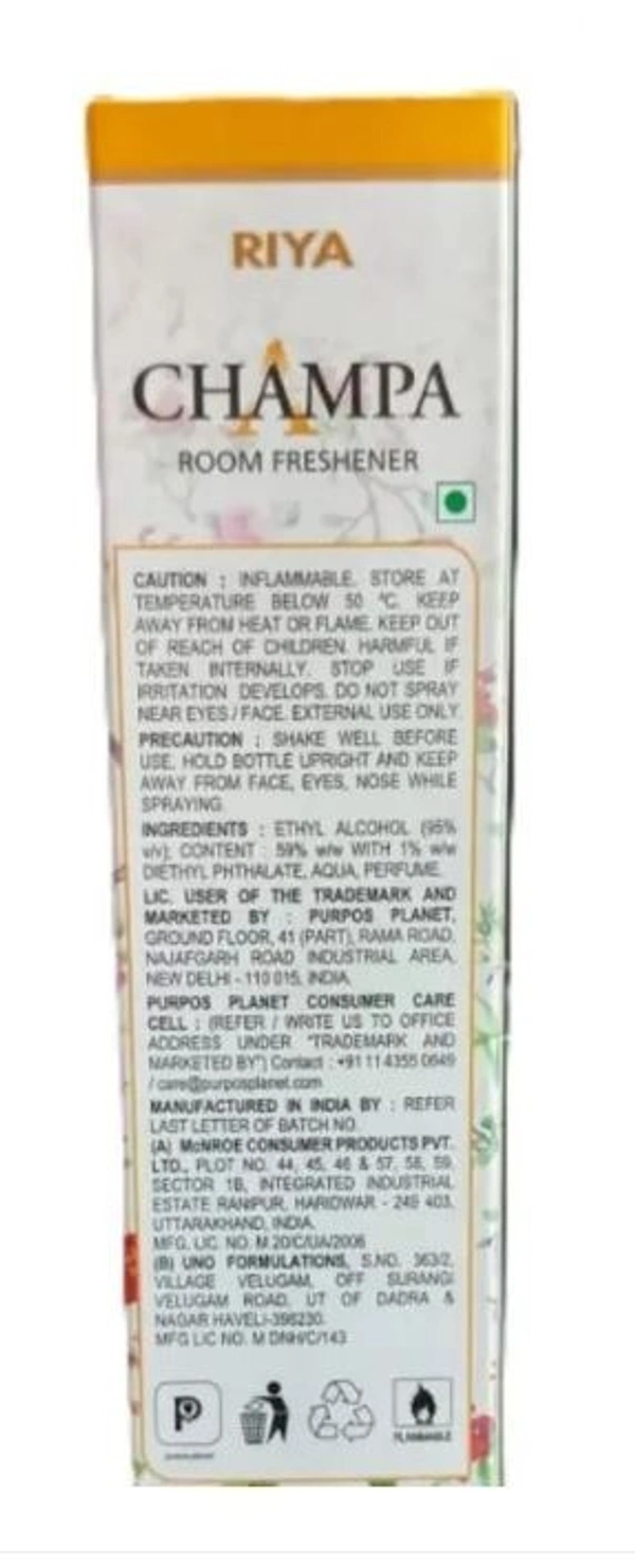 Perfect for homes, offices, or any indoor space, the CHAMPA ROOM FRESHENER delivers a delightful floral fragrance that lasts for hours, creating an ambiance of comfort and elegance.