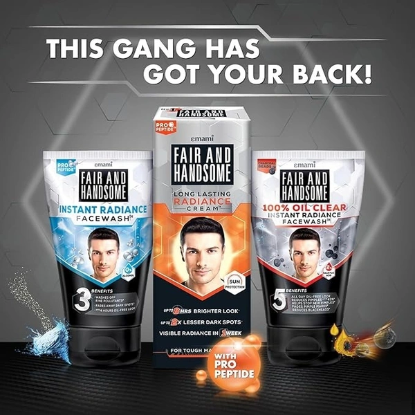 The Fair and Handsome Long Lasting Radiance Cream (60g) is the flagship grooming product for men from Emami. It is specifically formulated for "tough" male skin, which is typically thicker, oilier, and more prone to sweating than female skin.