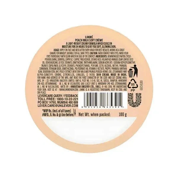 Lakme Peach Milk Soft Creme (100g) – Your Daily Dose of Lightweight Hydration