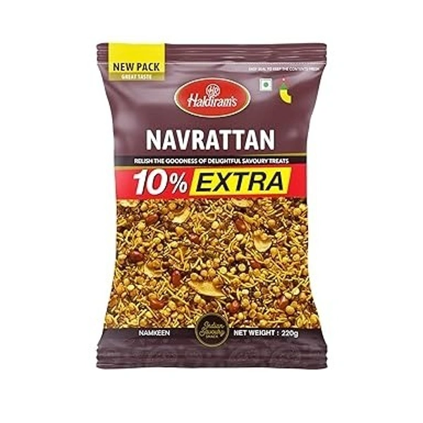 The Navrattan Namkeen 200g + 20g is a common promotional value pack offered by major brands like Haldiram's and Pariwar. In this format, you get a total of 220g of the snack at the price of the standard 200g pack.