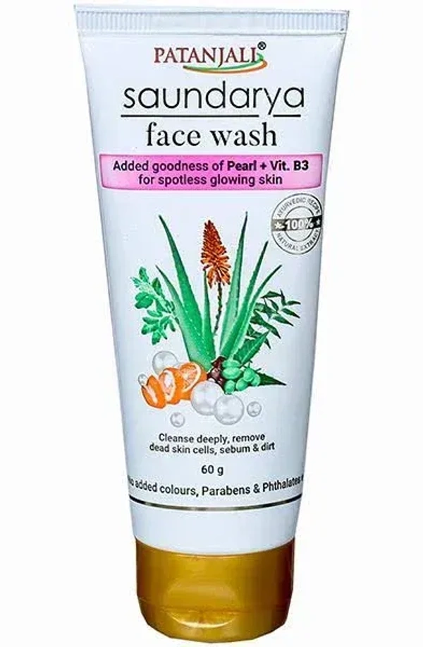 The Patanjali Soundarya Face Wash (60g) is the compact, travel-friendly version of Patanjali’s premium facial cleanser. It is popular for its creamy, herbal formula that provides a "soft" cleansing experience compared to the stronger neem-based variants.